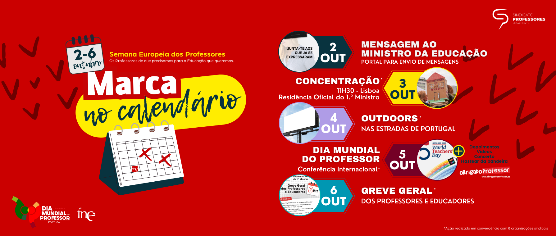 O Dia Mundial do Professor, 5 de outubro, contará então com uma Conferência Internacional online organizada pelos nove sindicatos em convergência além de depoimentos, vídeos e hastear da bandeira "Obrigado Professor" por parte dos sindicatos de docentes da FNE.