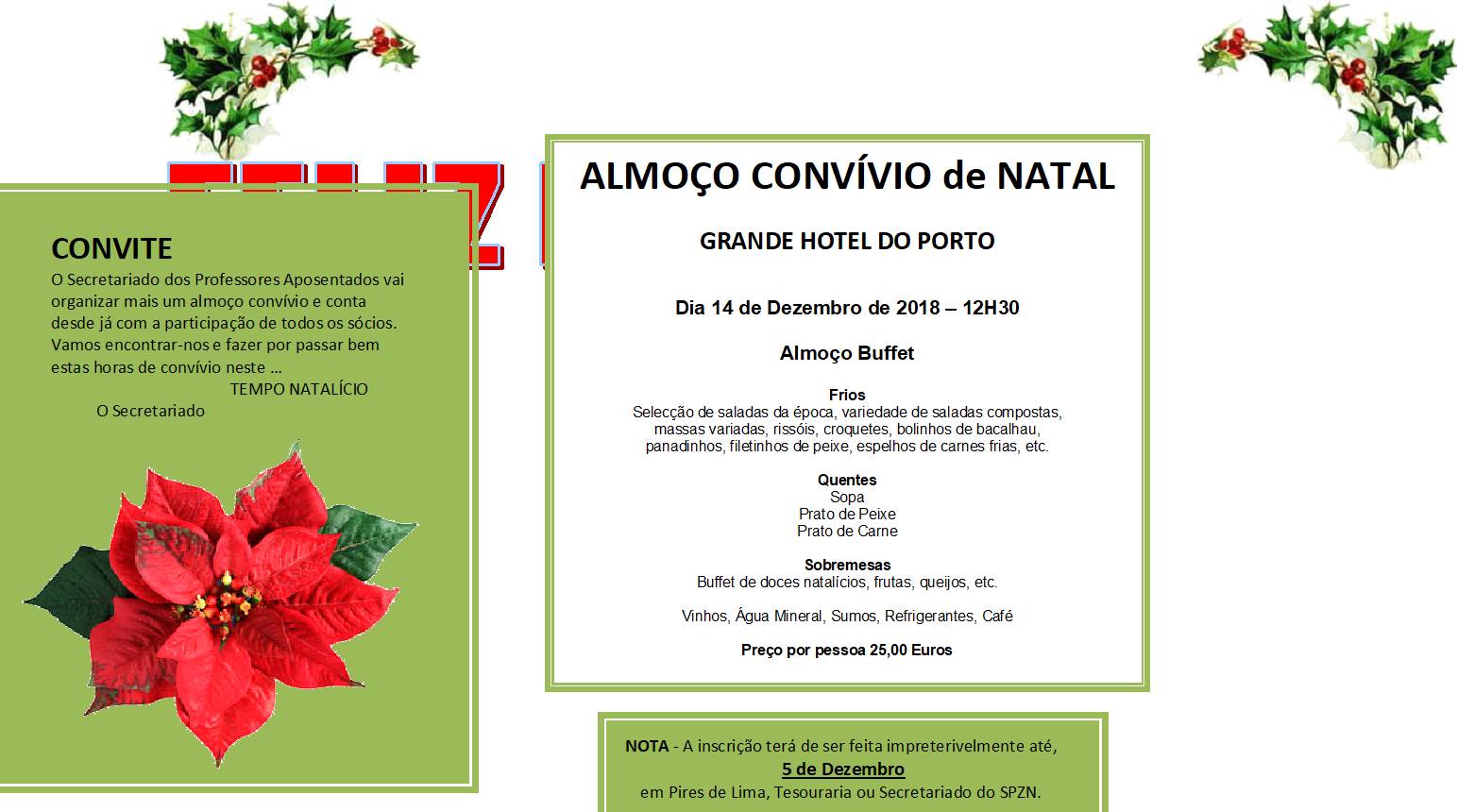 Realiza-se no dia 14 de Dezembro de 2018 o nosso Almoço / Convívio de Natal.