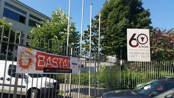 A ação, que contou com a presença da comunicação social, passou pela colocação de uma faixa no gradeamento da escola para que todos os transeuntes, em particular os pais, sejam sensibilizados para as injustiças de que são alvo os docentes.