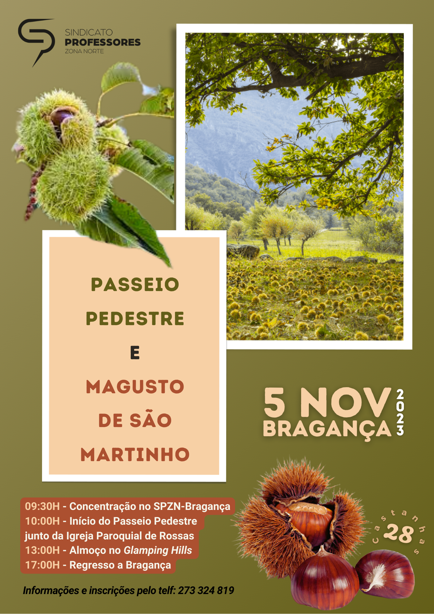 A Delegação de Bragança do SPZN vai promover, a 05 de novembro, um dia dedicado à comemoração do Dia de São Martinho, com Passeio Pedestre pelos soutos brigantinos, seguido do Tradicional Magusto de São Martinho, em Santa Comba de Rossas, no empreendimento turístico Glamping Hills (junto à Igreja Paroquial).